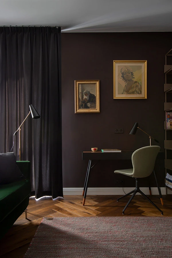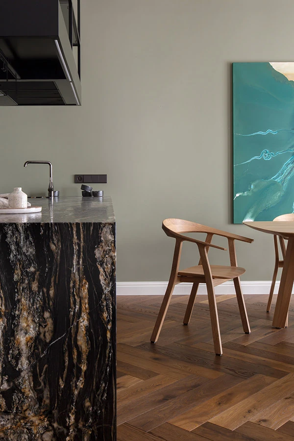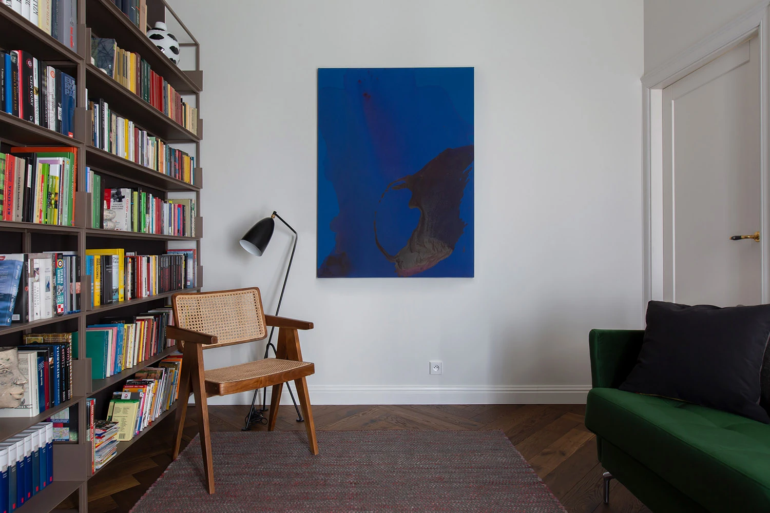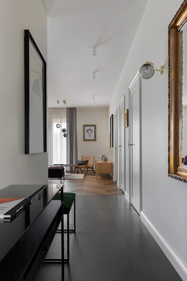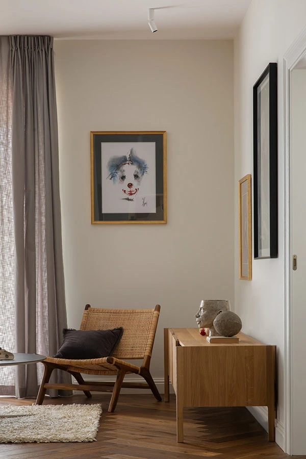 W tym 120-metrowym apartamencie czas płynie inaczej. Miłość do antyków stała się punktem wyjścia i osią całego projektu. Właściciele — kolekcjonerzy z zamiłowaniem do historii zaklętej w przedmiotach — marzyli o wnętrzu, które nie przytłoczy, a uwydatni charakter zgromadzonych zbiorów. Powściągliwa klasyka stała się neutralnym tłem dla obrazów — zarówno tych w pozłacanych ramach, jak i współczesnej abstrakcji, wnoszącej świeży kontrapunkt. Całość dopełniają wyraziste kolorystyczne akcenty i struktury, które zaskakują i łamią przewidywalność. To wnętrze, które nie epatuje luksusem, lecz dyskretnie pokazuje, że piękno tkwi w przemyślanych wyborach.